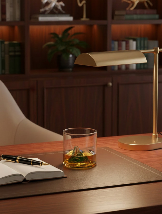 這不僅是一只玻璃杯,更是一幕在掌心演出的微縮壯麗風景。