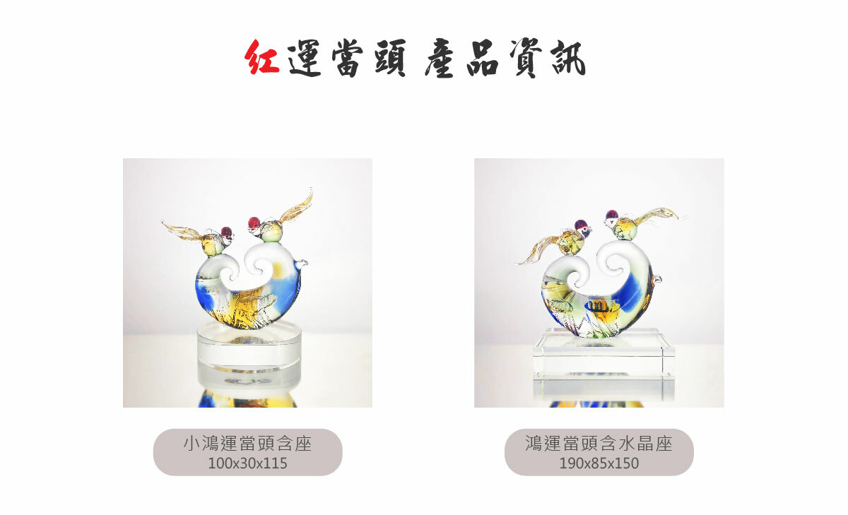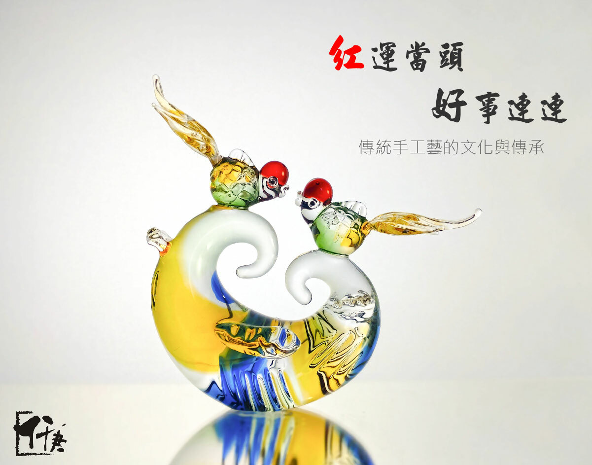 水晶玻璃的透彩結合有著紅色紅冠的金魚更能凸顯出鴻運當頭的喜悅。