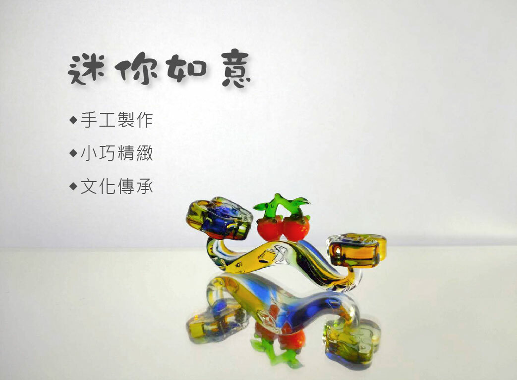 利用彩透精巧的玻璃小如意,傳達柿柿如意的祝福。是擺上桌面的療癒小物也是可以送朋友的祝福小紀念品。