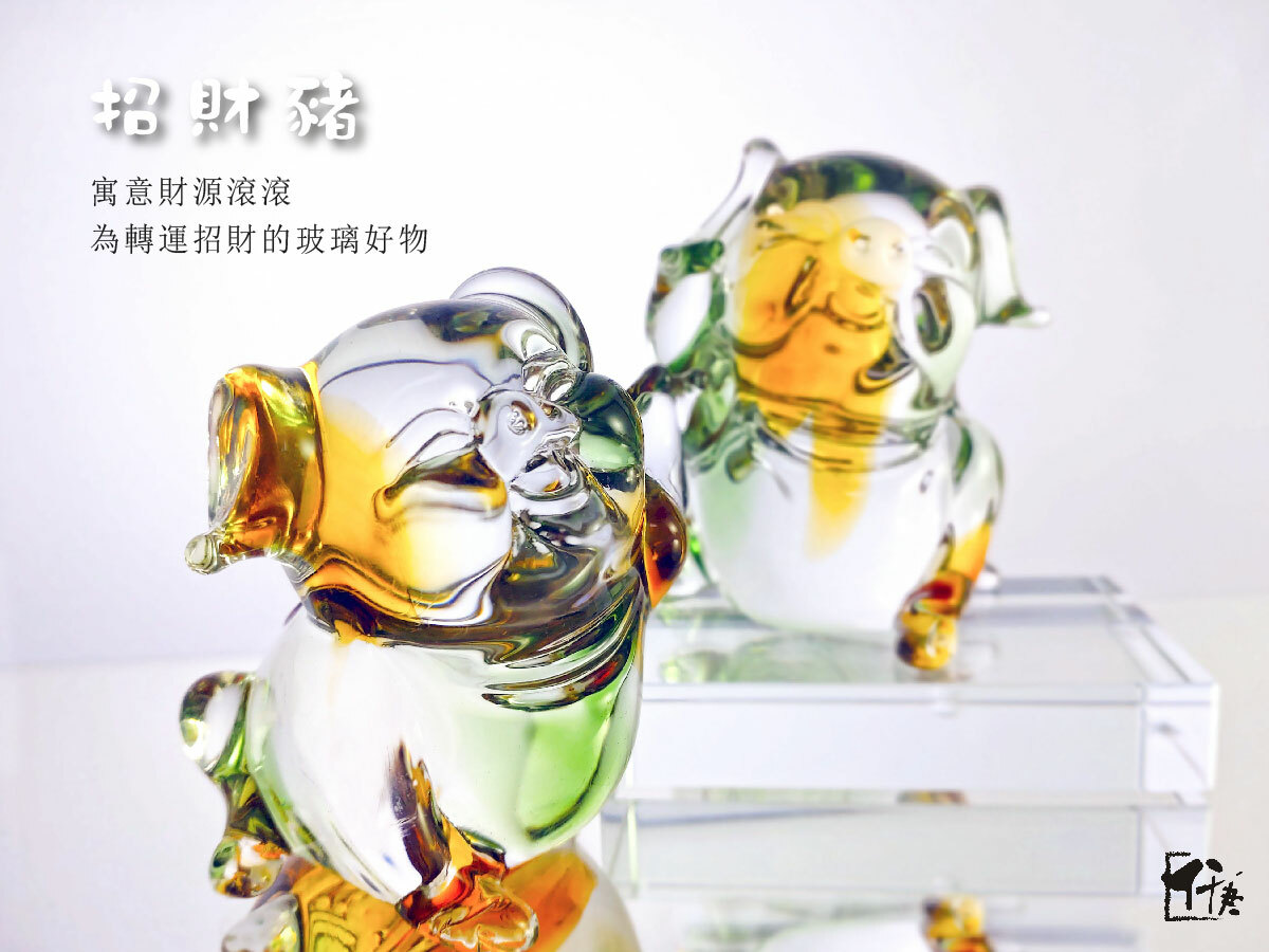 🐷玻璃手工燒製,可愛招財豬對左招財右招福